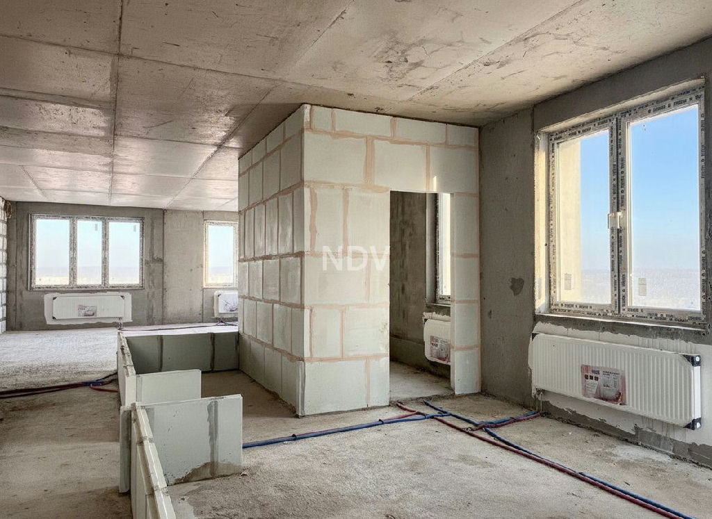 Квартира без отделки площадью 97,3 м.кв.. В квартире 10 окон, выходящие на три стороны. Мастер-спальня, спальня, гардеробная комната, два просторных санузла (один с окном), светлая просторная зона гостиной с 5ю окнами, которую можно сделать единым пространством как и выделить дополнительную комнату или кабинет.